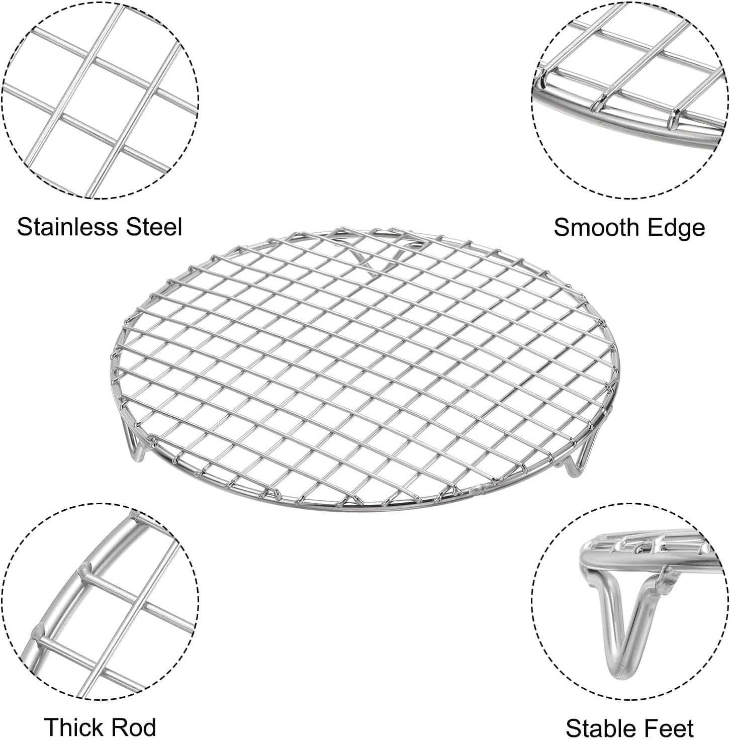 uxcell 2 Pcs Round Cooking Rack with Legs, Dia 7.9 Inch 304 Stainless Steel Barbecue Grill for Cooking Baking Barbecue Air Fryer Racks, Silver