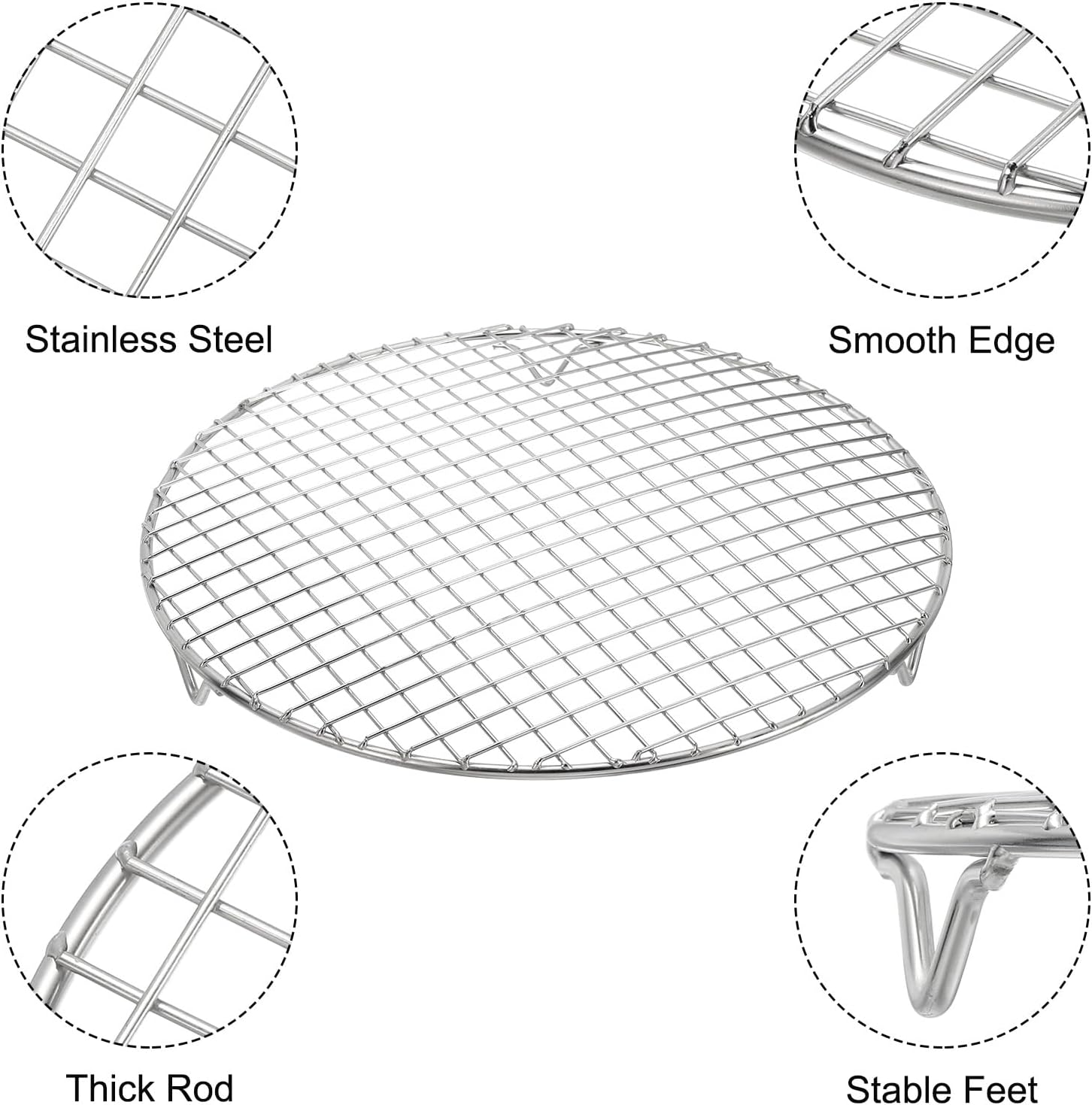 uxcell Round Cooking Rack with Legs, Dia 11 Inch 304 Stainless Steel Barbecue Grill for Cooking Baking Barbecue Air Fryer Racks, Silver