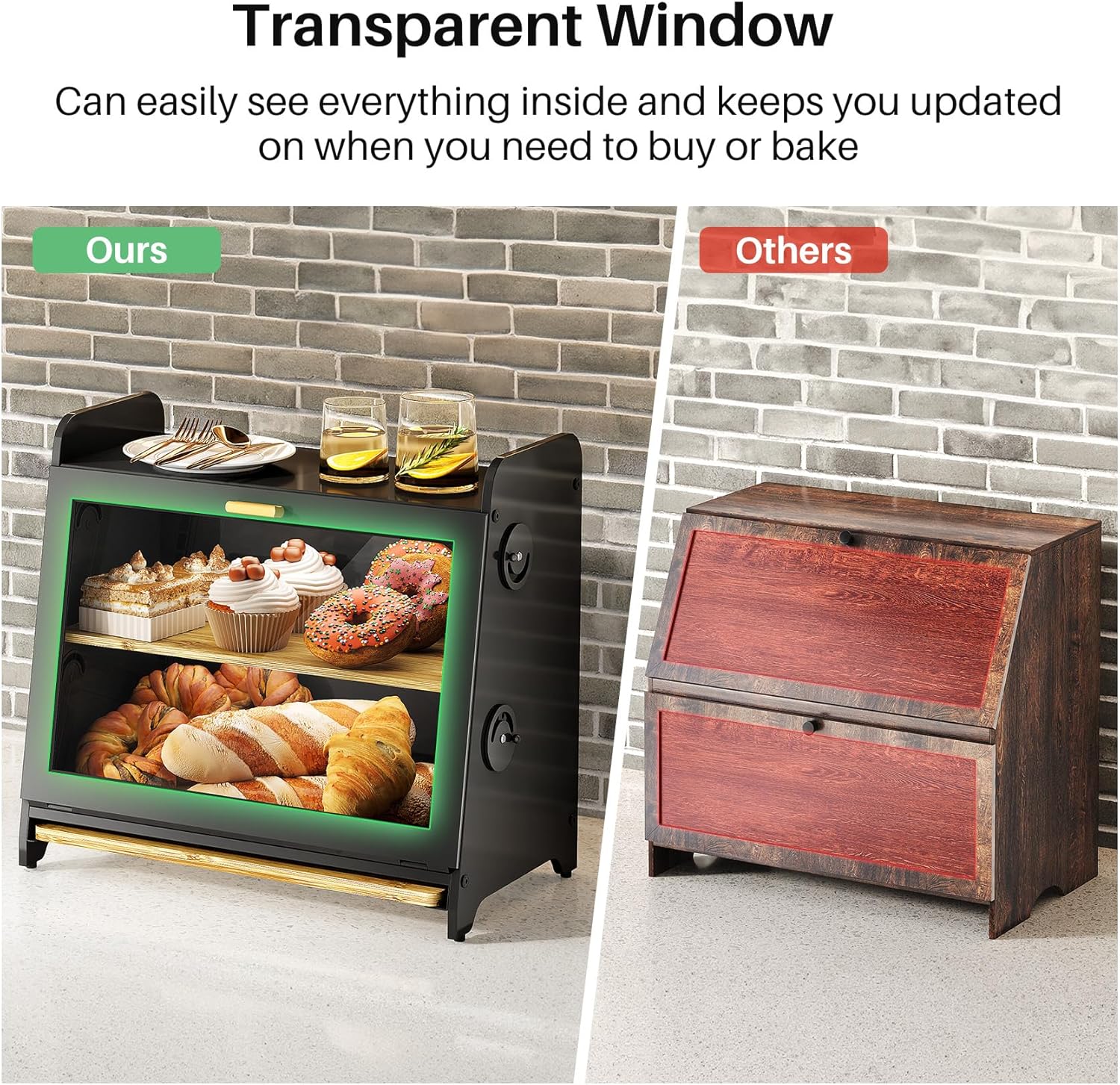 - Magnetic See-Through Window: The black bread box features a transparent window for easy viewing of contents and keeps you updated on when you need to buy or bake. Its magnetic design prevents flies from accessing the food while ensuring superior airtightness.