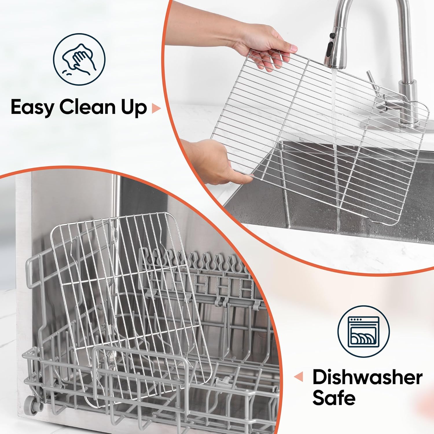 - Exquisite crafted, roasting rack designed with smooth edge without rough spots, provide a comfortable grip, dense wires prevent food from falling through, grid cooking racks are oven safe and heat-resistant up to 575℉