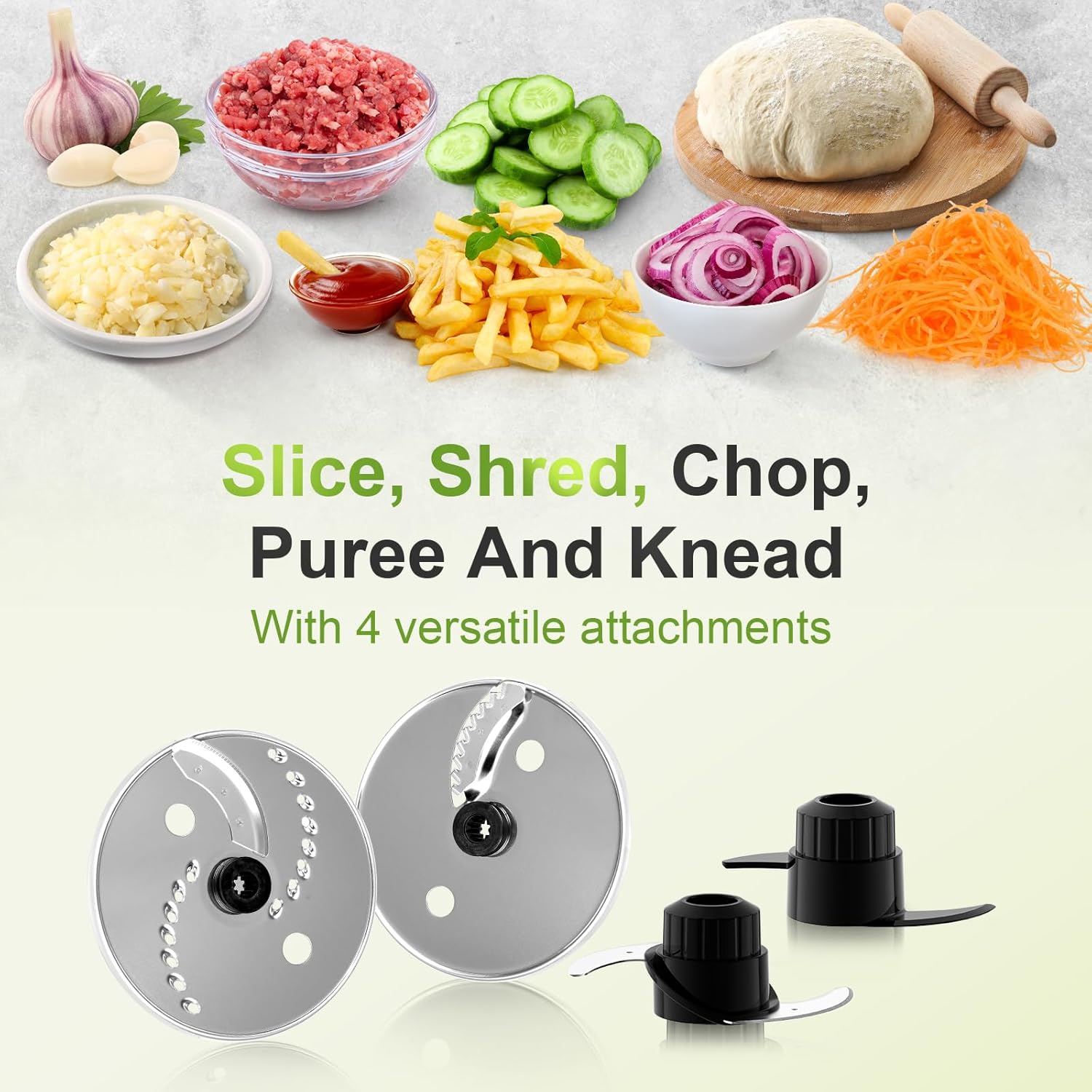 - 600W Strong Motor: This food processor powers through tough ingredients (like carrots) and demanding tasks. Non-slip feet keep it locked in place during operation. You can puree, knead, dice, and slice to your heart’s content. It’s a real game-changer for meal prep, saving you precious prep time
