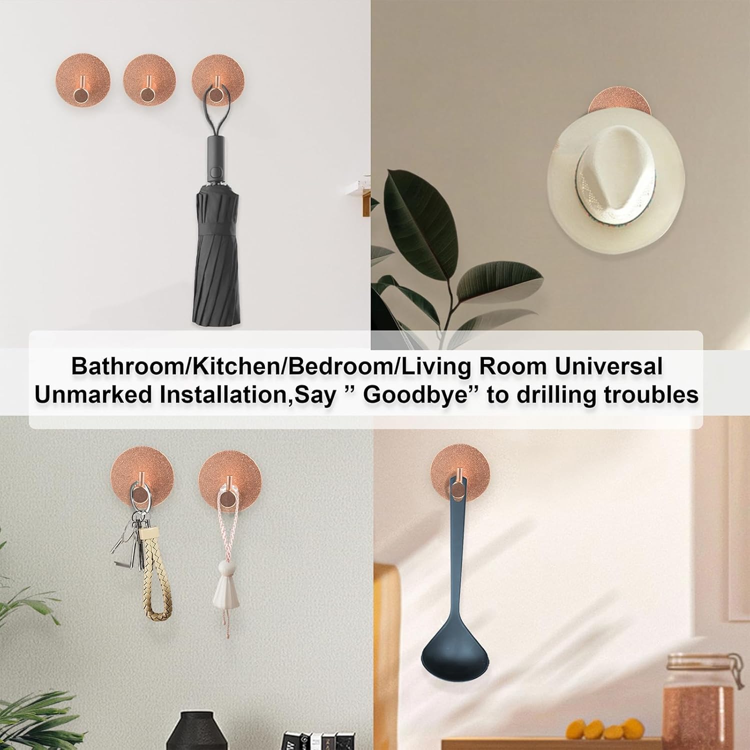 - 【Ultra-Strong Adhesive – Holds Up to 6 lbs】 JOYLUCK adhesive hooks feature premium adhesive backing for a strong, reliable hold (up to 6 lbs per hook). Perfect for hanging coats, towels, keys, decorations, and more without drilling. The industrial-grade adhesive ensures long-lasting durability on tile, glass, wood, and metal surfaces. (Weight capacity may vary by surface.)
