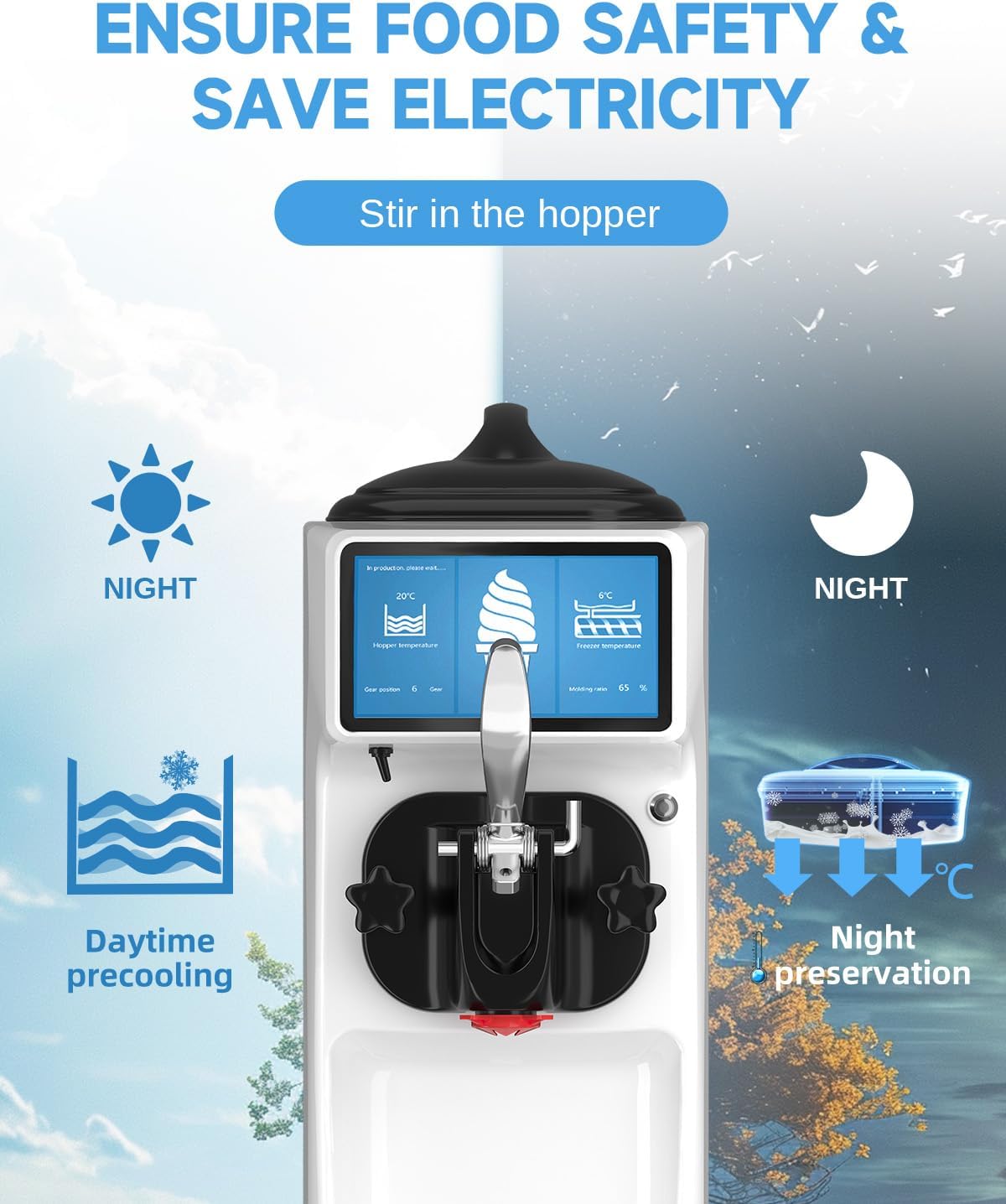 Soft Serve Ice Cream Machine, 7 Inch Screen Ice Cream Maker Machine 4.2 to 4.6 Gal/H Ice Cream Maker Machine with Pre-Cooling Soft Serve Machine with 1.6 Gals Tank for Party Store School Home ETL