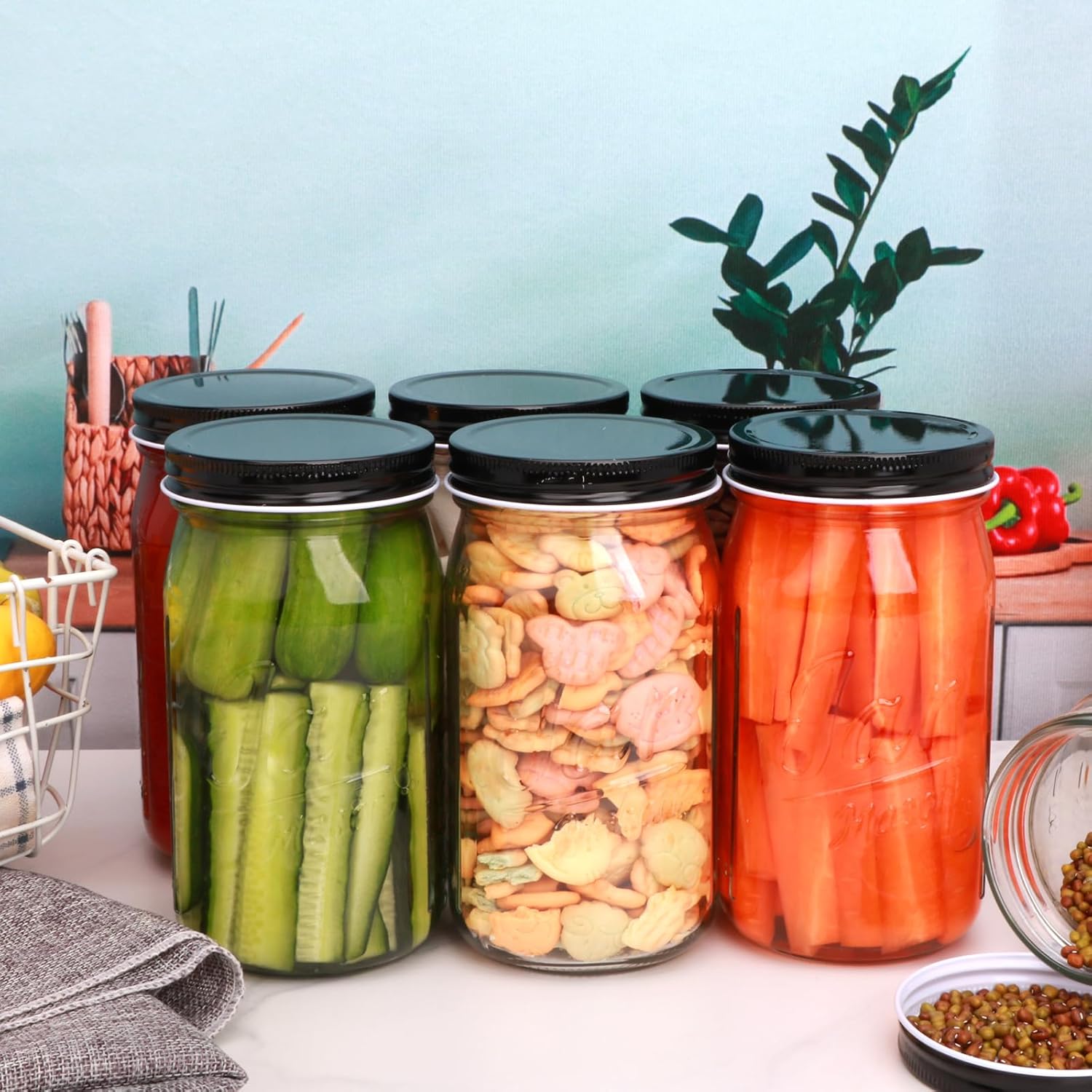 - Premium Food-Grade Glass - The mason jars 32 oz with lids are made of BPA free, toxic-free, lead free glass to ensure food grade safe and the high visibility allowing you to see what’s inside jars with black lids.The jars are safe for refrigerator, dishwasher and microwave but the lids must be removed first. For freezing contents safely, do not exceed a 24-ounce fill level.