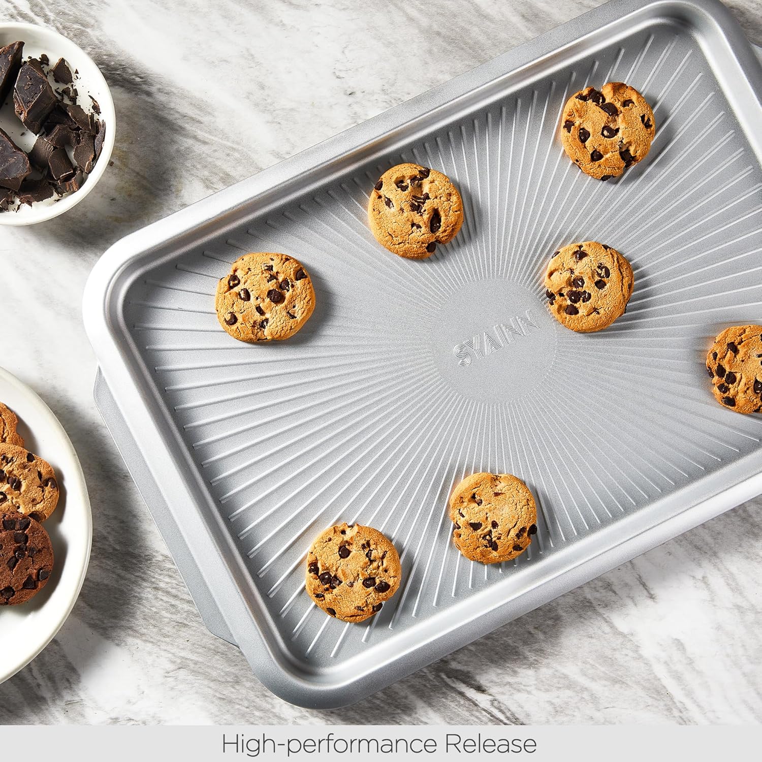 SYAINN Non-stick Ceramic Baking Sheet Set, 3 Pieces- Aluminum Steel Cookie Sheets for Baking-Includes Half/Quarter/Jelly Roll Pans-Warp Resistant, Toxic, PTFE & PFOA Free-Blue