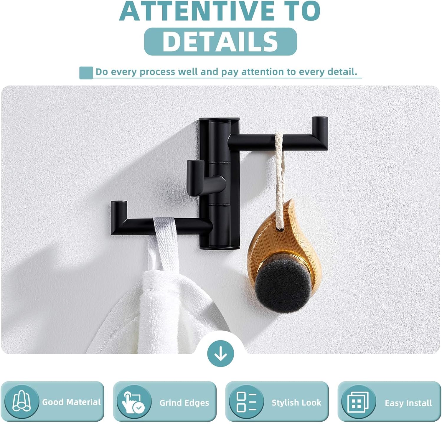 Suyar Swivel Towel Hook 3 Arms, SUS 304 Stainless Steel Coat Robe Holder, Foldable Wall Hook, Matte Black
