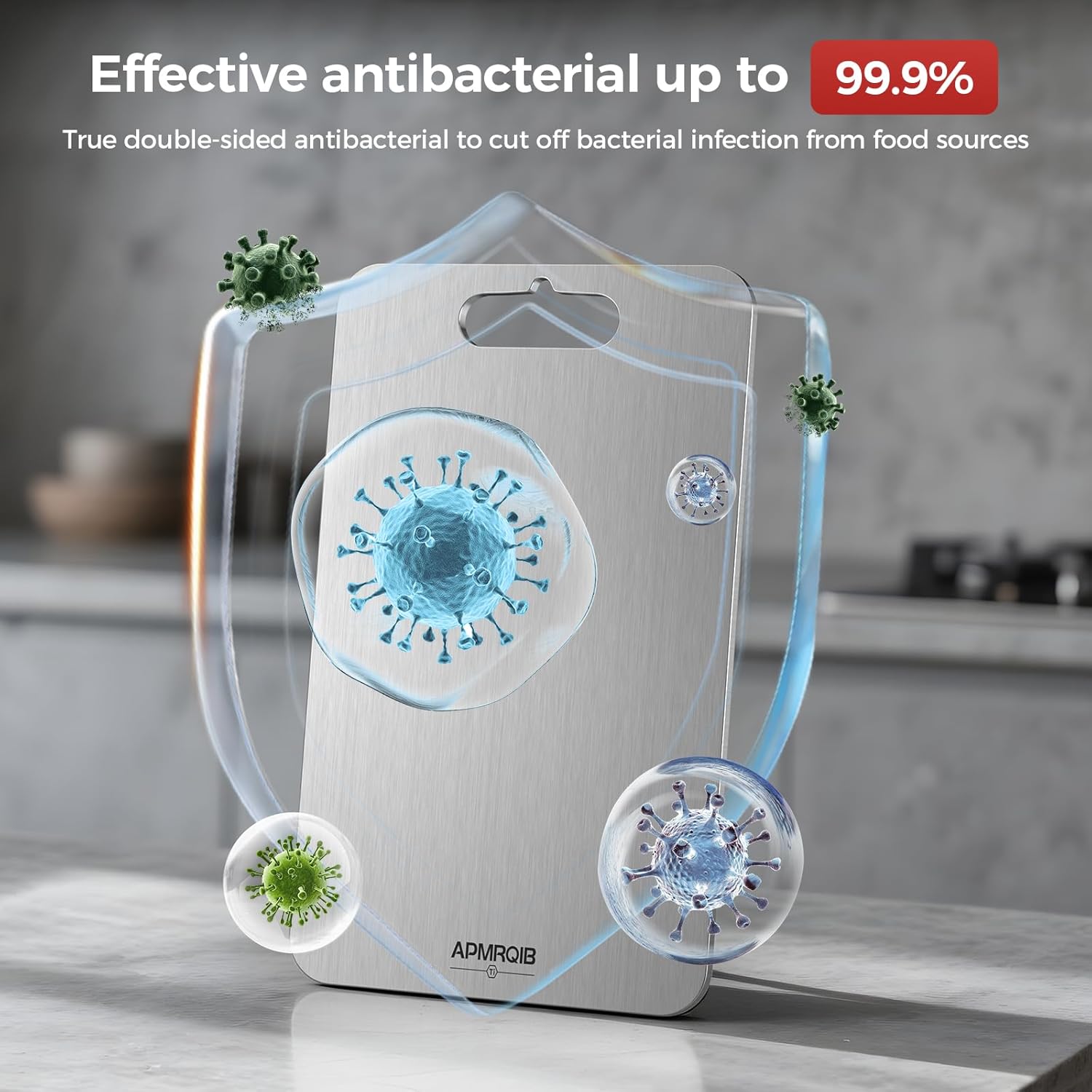 - 【Sturdy and Durable】: Engineered from a single piece of titanium without any glue or adhesives, these cutting boards are non-toxic and built for long-lasting durability. They can withstand the rigors of daily use, being highly resistant to notches and punctures from sharp knives. The wire-drawn surface treatment creates a smooth, pore-free finish that resists staining and odor absorption