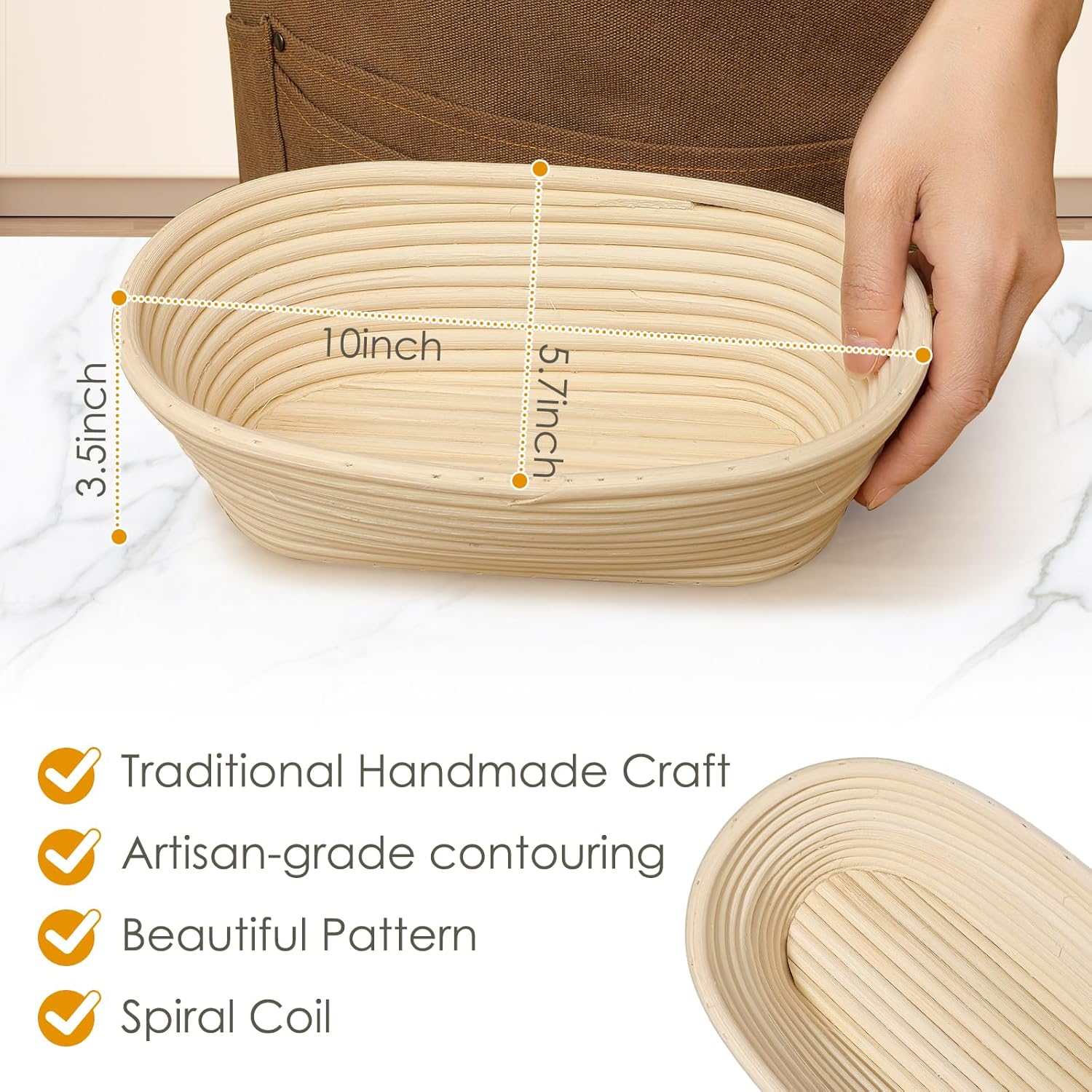 - Material: 100% Natural Indonesian Rattan — lightweight and air-permeable for optimal dough rising.The sourdough starter kit includes 2pcs 10 inch oval banneton bread proofing basket with linen liner.