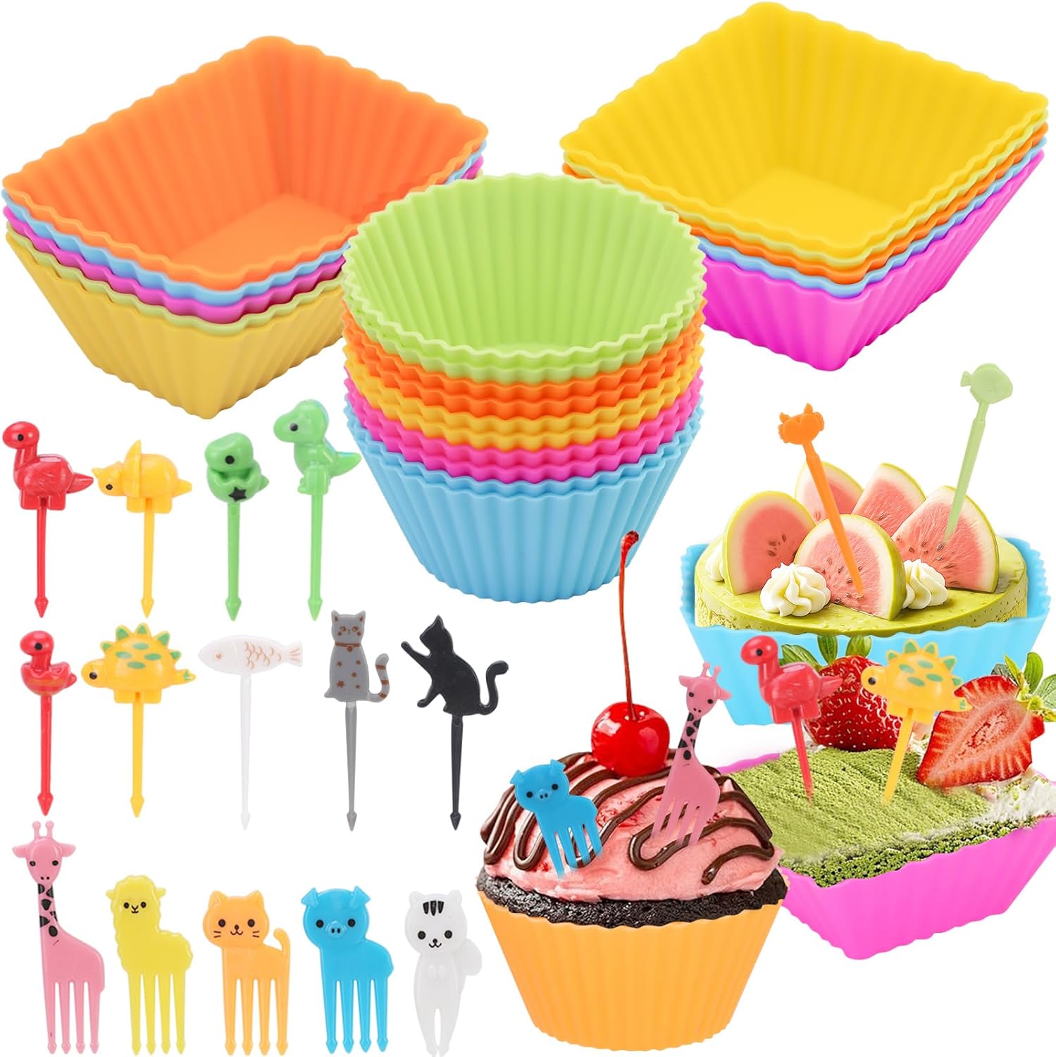 - 【VALUE-PACKED COMPLETE SET】Receive 20 reusable food-grade silicone dividers (in various shapes) and 40 adorable animal food picks. Everything you need to create fun, organized, and healthy lunches for your child while also being perfect as baking molds for cupcakes and jellies.